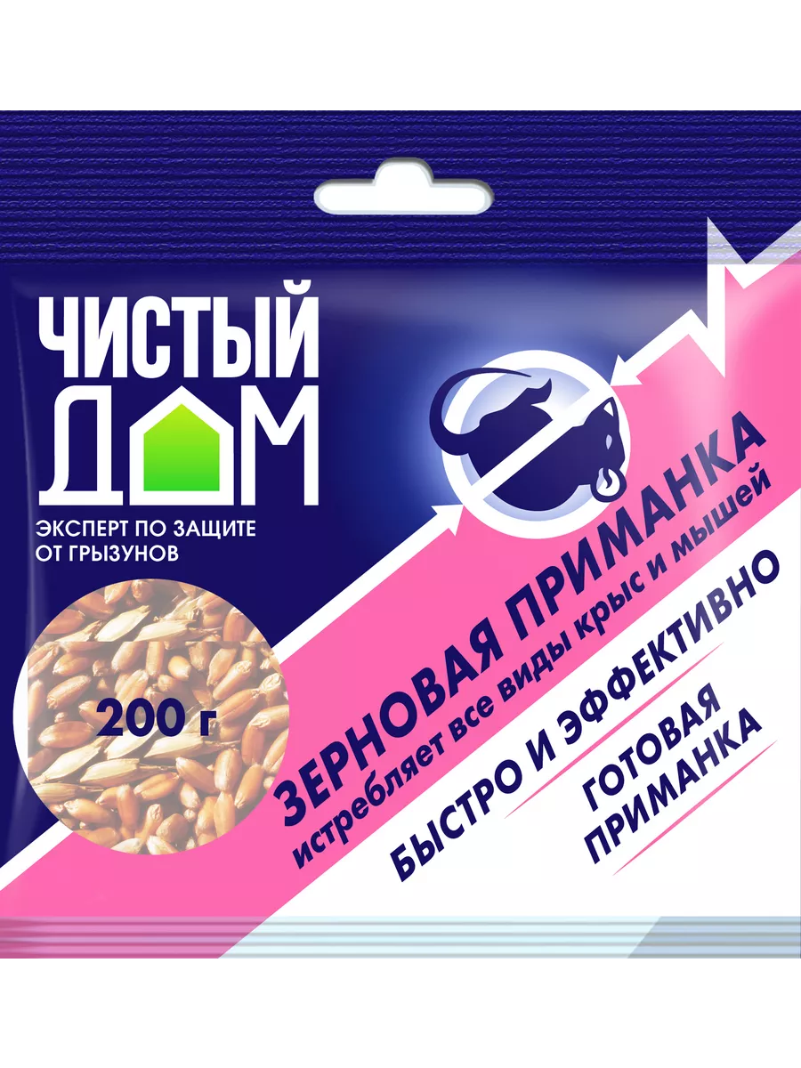 Зерновая приманка — это универсальное средство для истребления серых и черных крыс и домовых мышей. Основа приманки — натуральные зерна пшеницы, что обеспечивает отличную поедаемость грызунами.